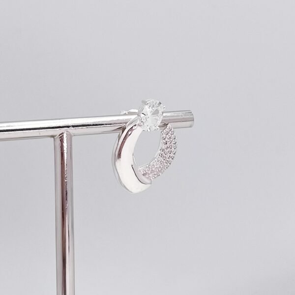Detalhes Brinco em prata folha lisa e cravejada com zircônia oval