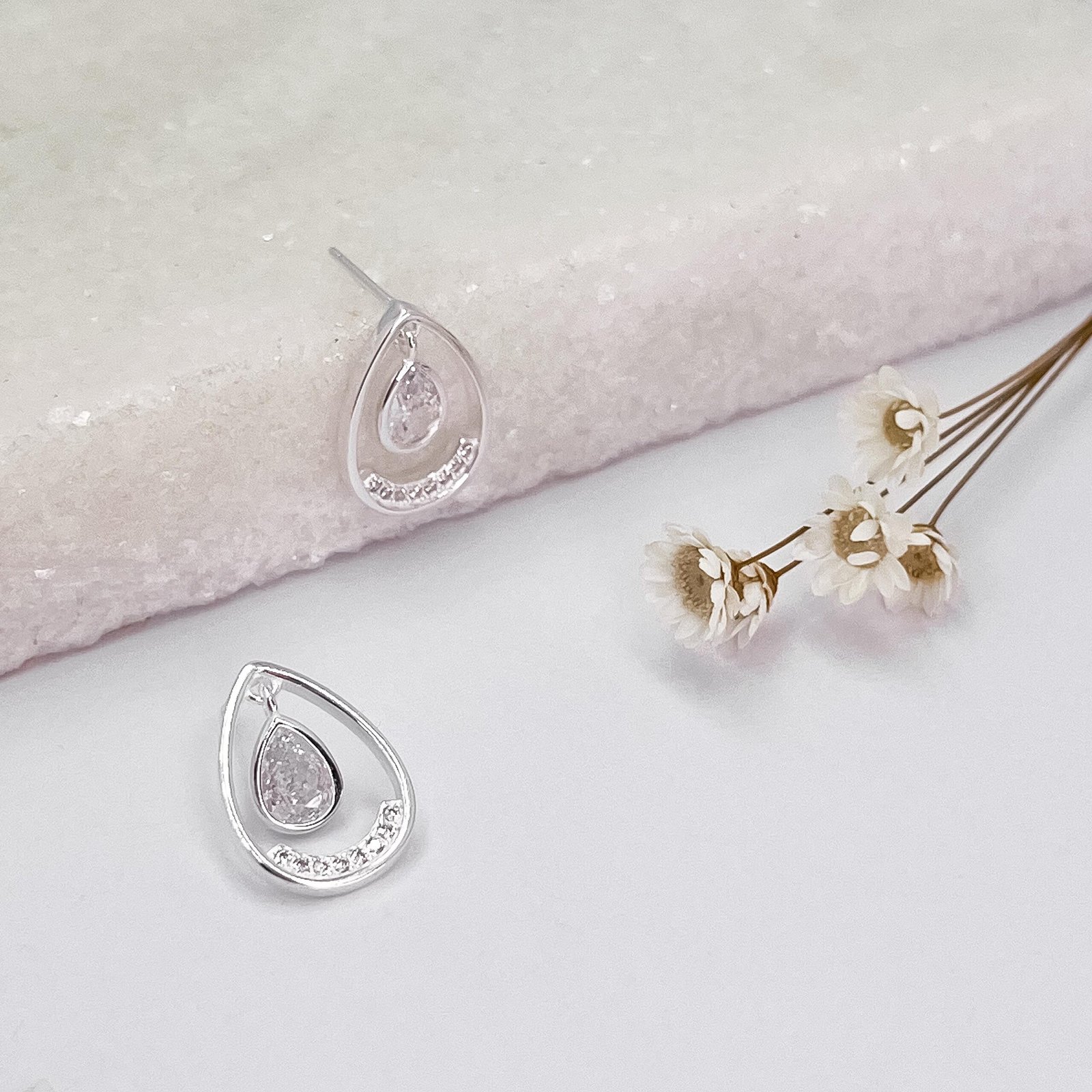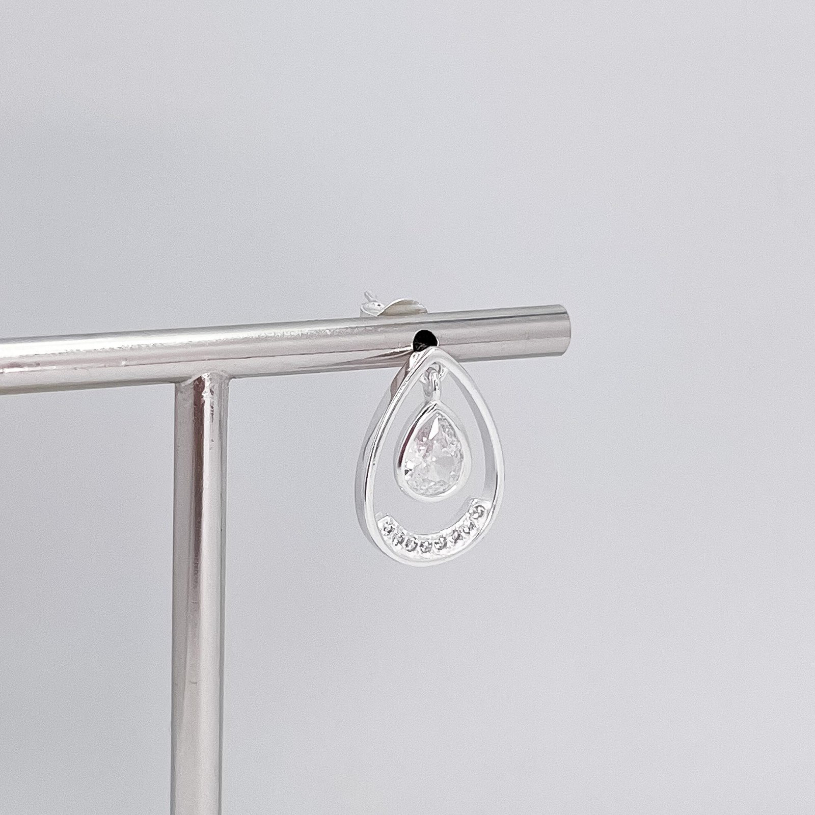 Detalhes Brinco em prata com gota zircônia e formato gota com fio cravejado
