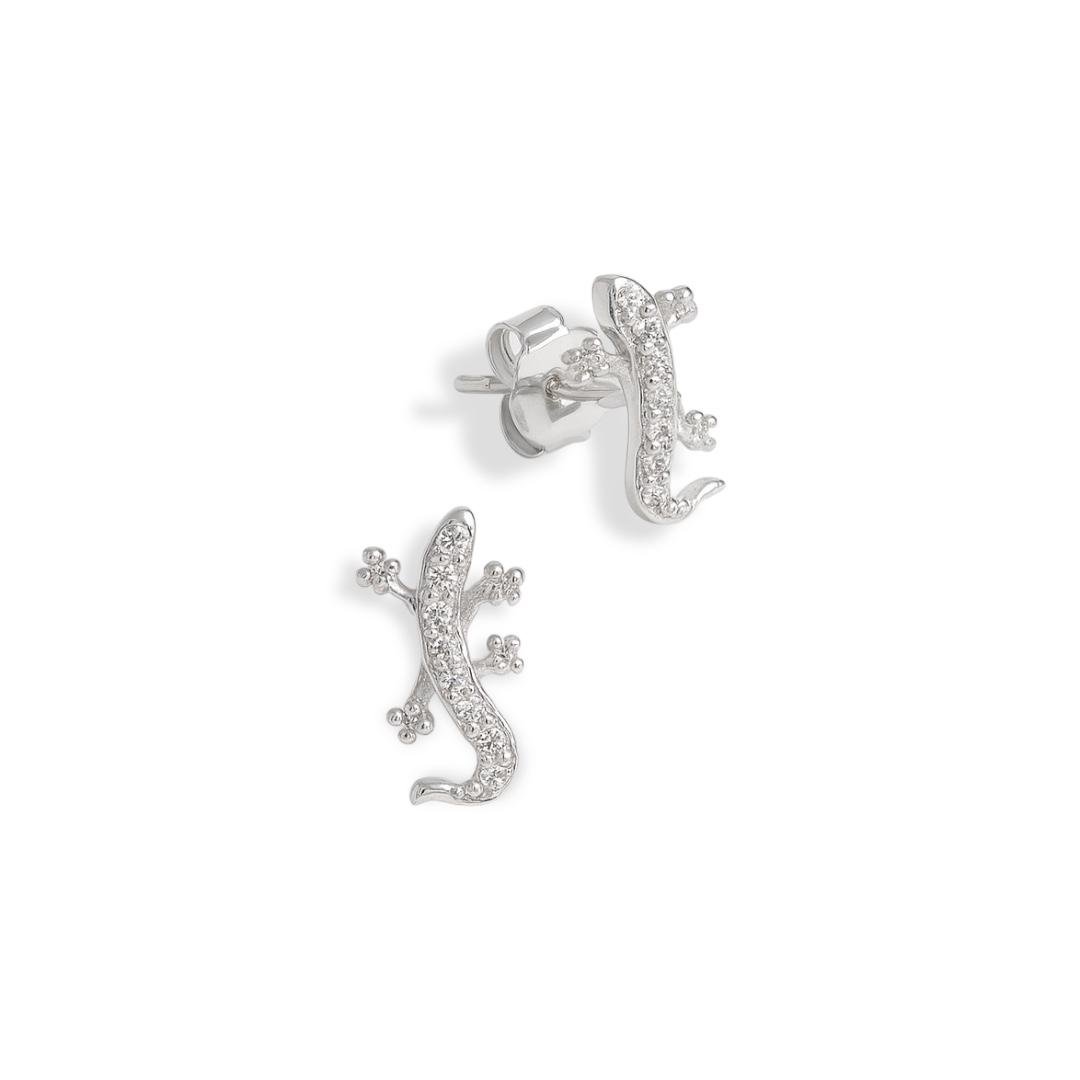 Início BRINCOS Pequenos Brinco Prata Lagartixa Cravejada Zircônias