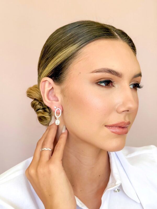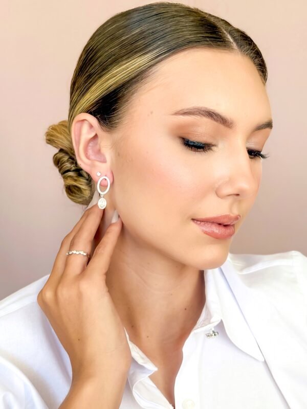 Detalhes Brinco em prata oval cravejado com zircônia pendurado