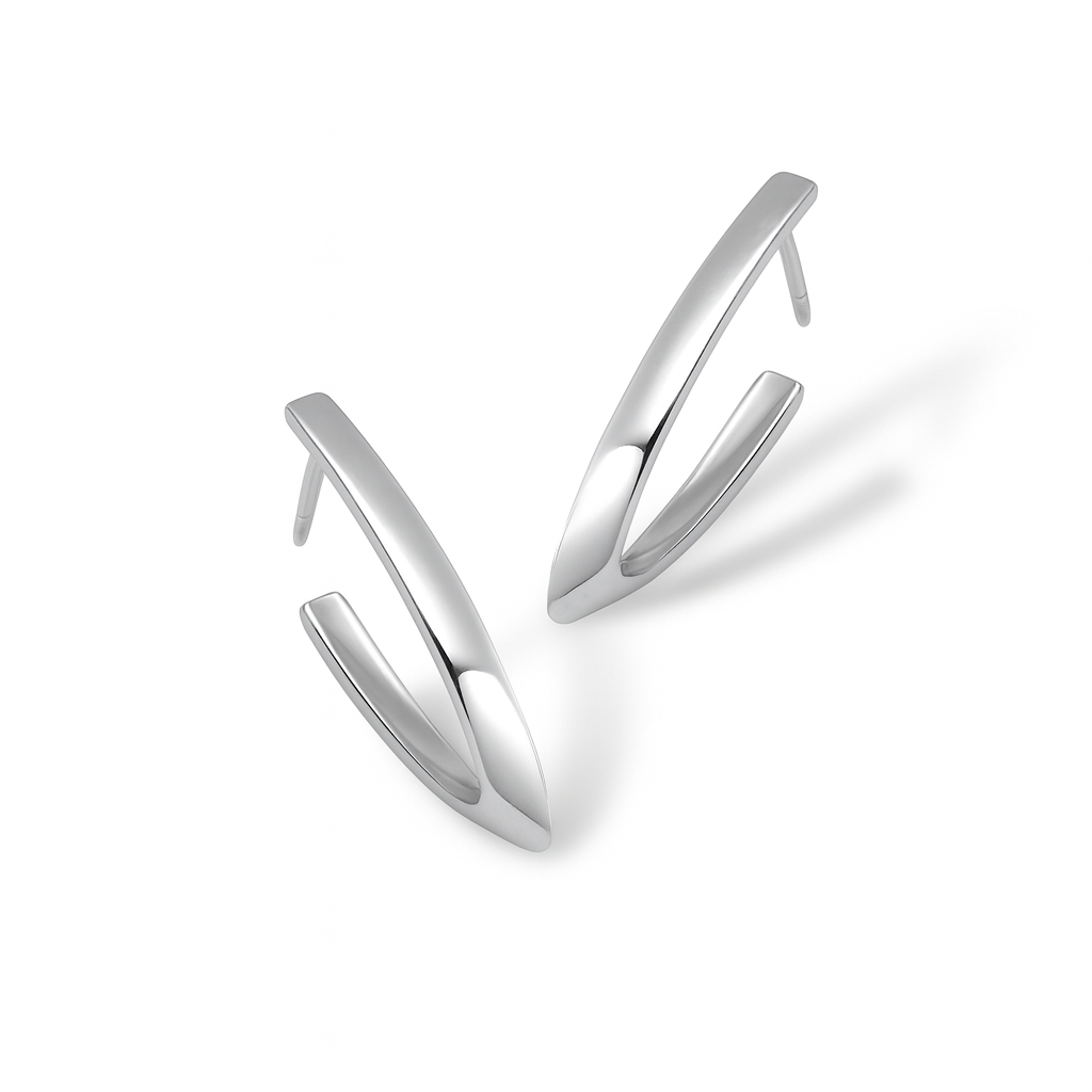 Detalhes Brinco em prata no formato oval liso com tarraxa