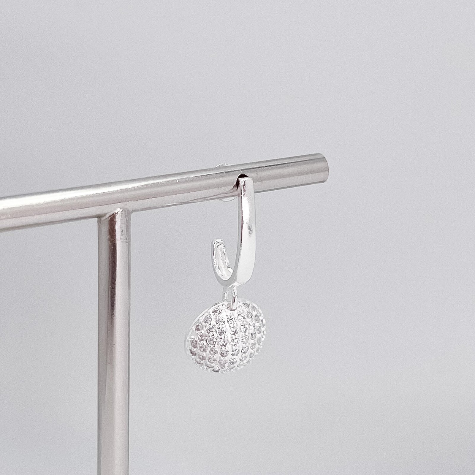 Detalhes Brinco em prata pendulo liso com meia bola cravejada