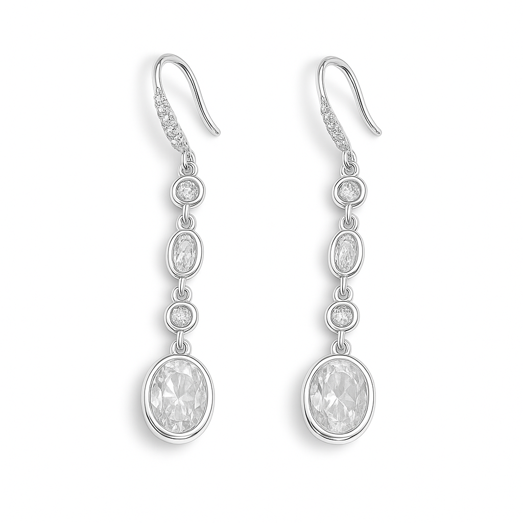 Brinco Prata Pendulo Zircônia Oval Redonda
