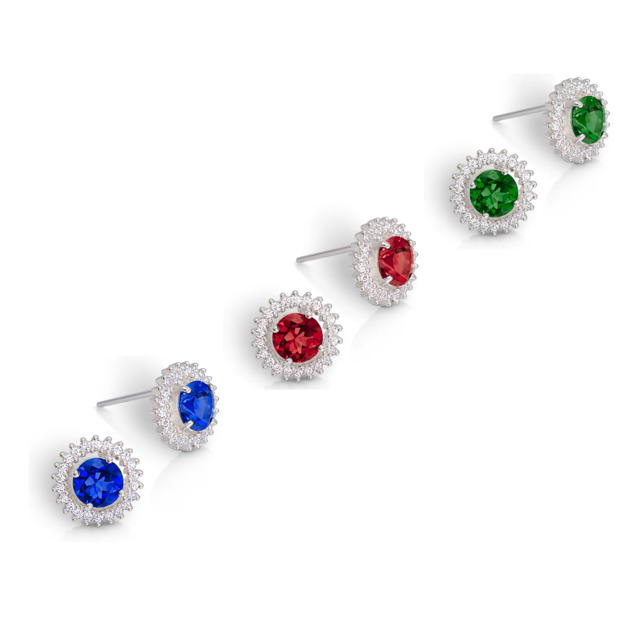 Detalhes Brinco prata redondo cravejado com zircônia central 5 mm colorida