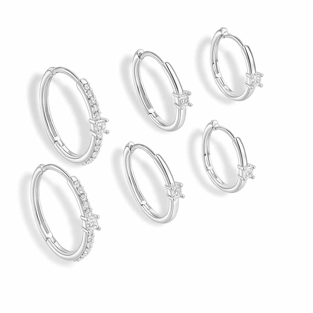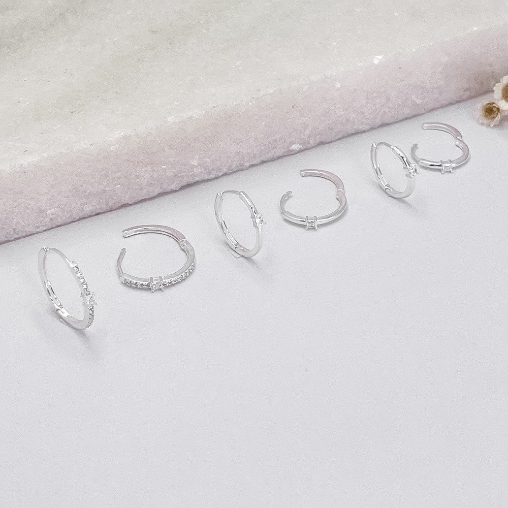 Brinco Trio Prata Argola Lisa Cravejada Zirconia