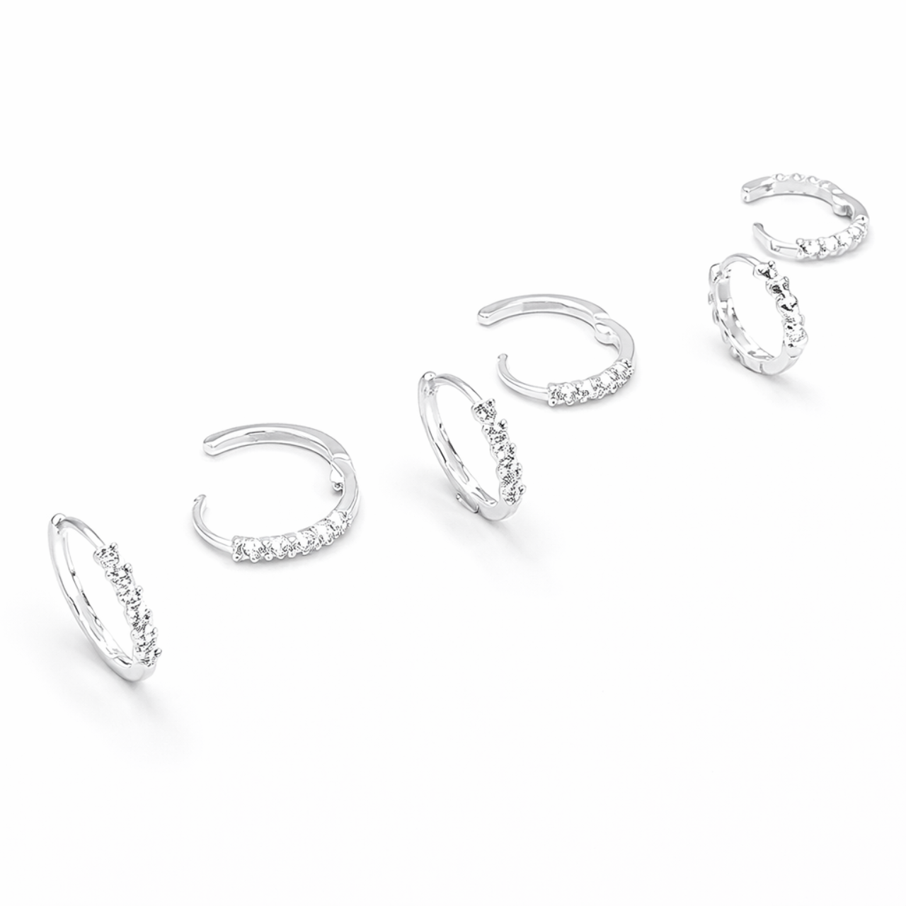 Início BRINCOS Argolas Cravejada Brinco Trio Prata Argola Mini Coração Liso Cravejado