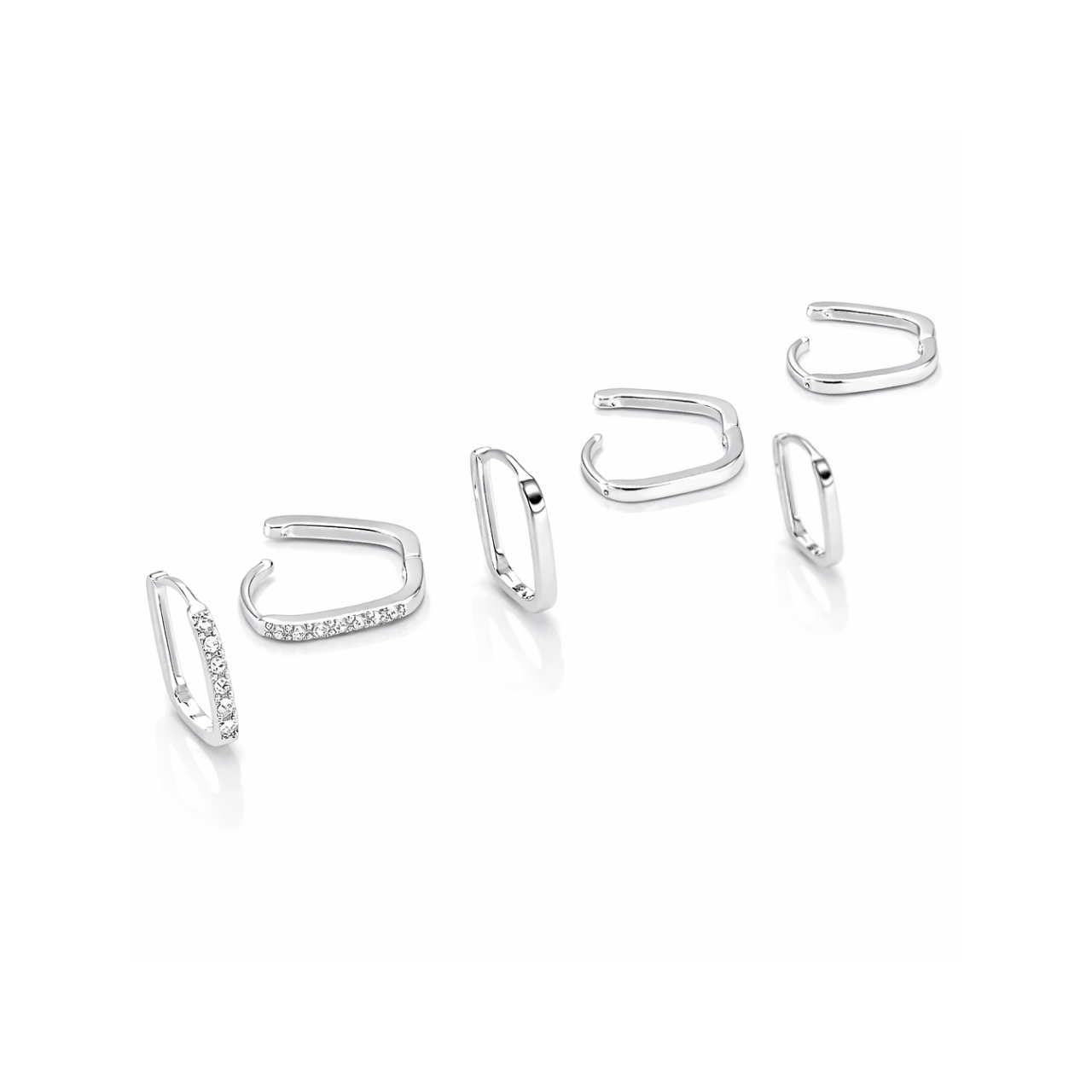 Início BRINCOS Argolas Cravejada Brinco Trio Prata Quadr. Arredondada 2 Lisos 1 Cravejado