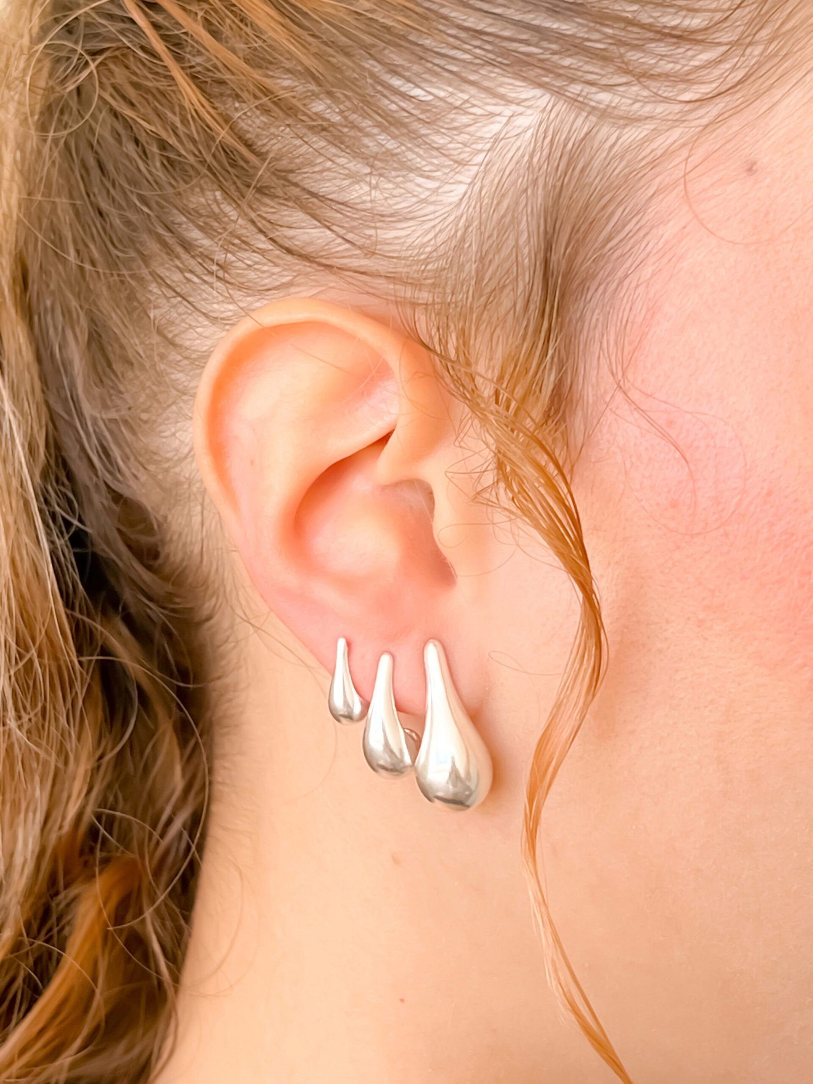 Detalhes Brinco trio em prata formato de gota abaulada com tarraxa