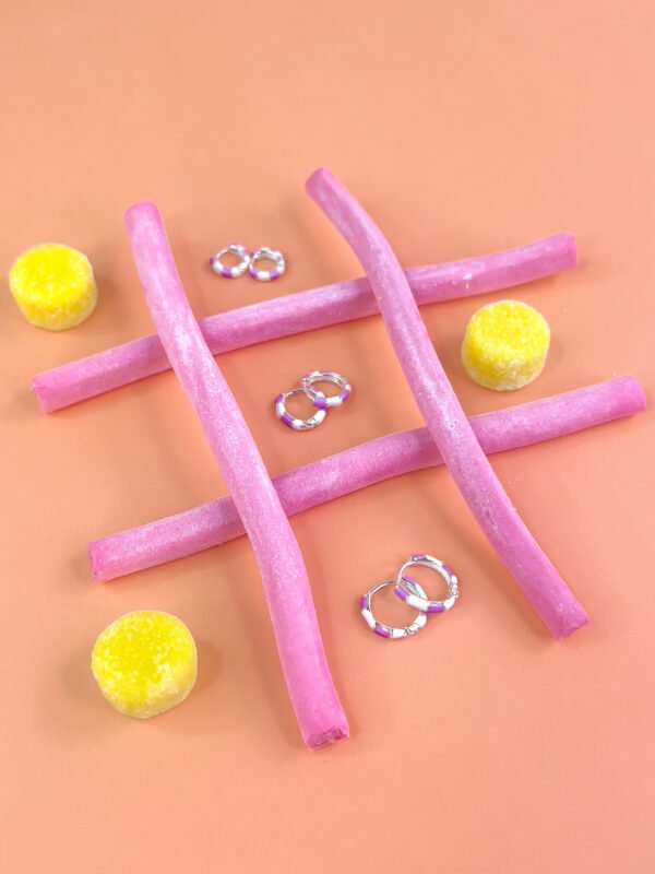 Detalhes Brinco prata trio resina cor lilás/roxa
