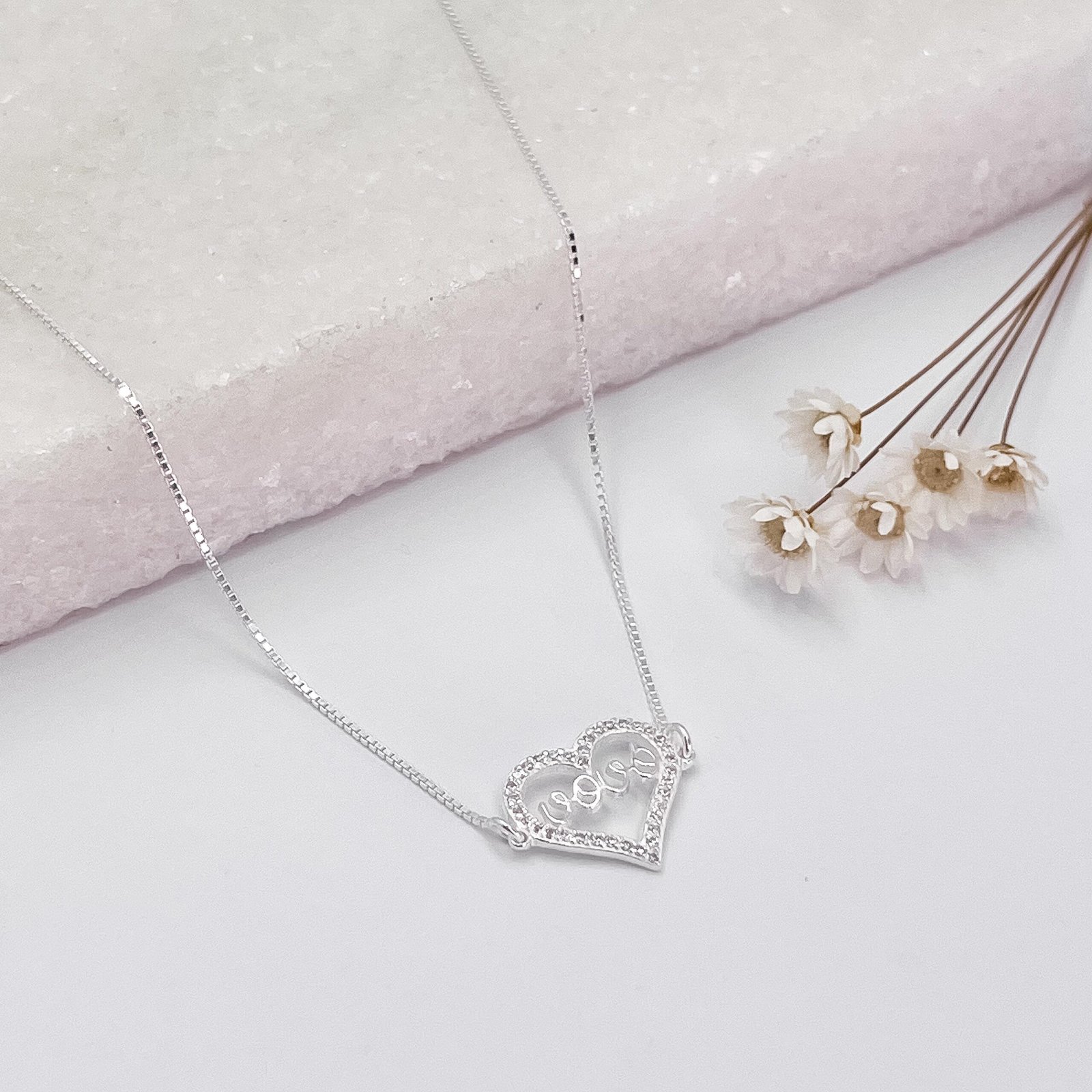 Início COLARES Colar 45 cm Colar Coração Love em Prata 925