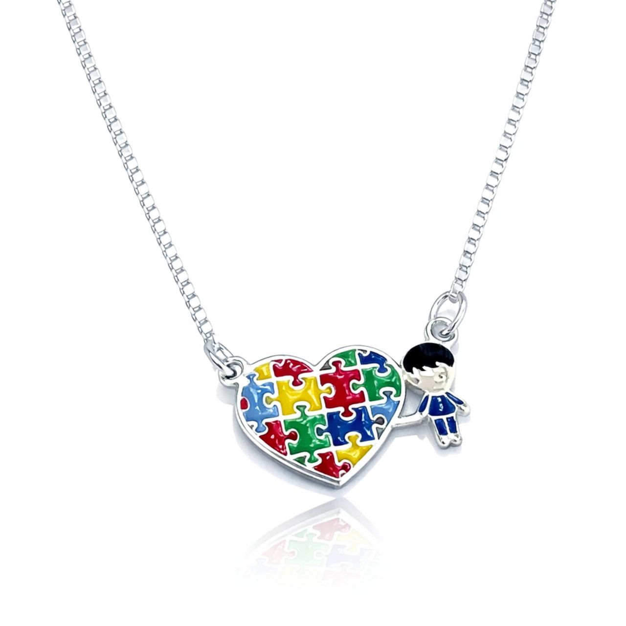 Início EDIÇÃO RARA Colares Colar Prata Pingente Autismo Menino 45 CM