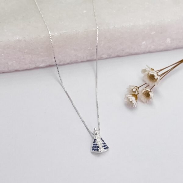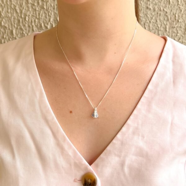 Detalhes Colar em prata pingente Nossa Senhora cravejada com zircônias azul.