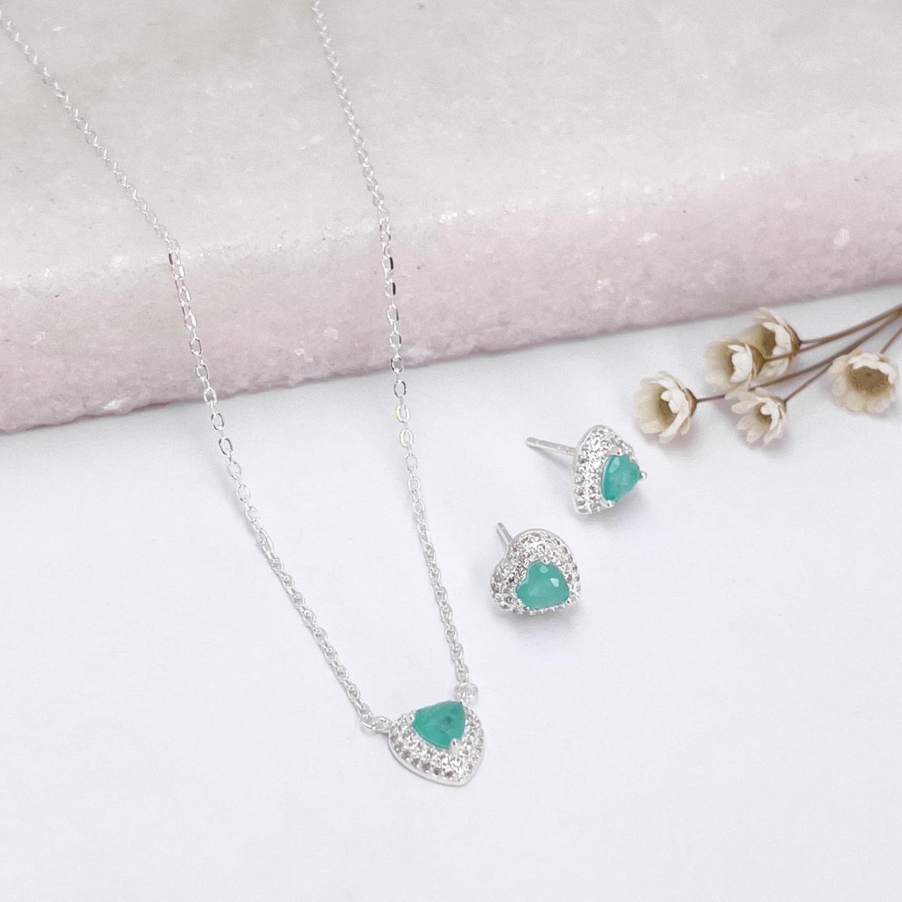 Conjunto Coração Cravejado Color Prata 925