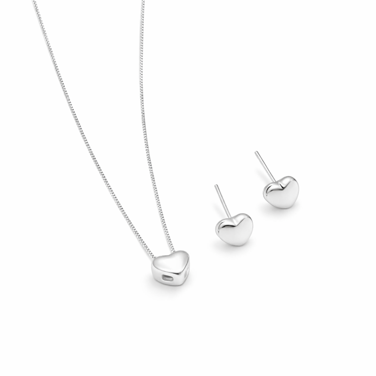 Início CONJUNTOS Conjunto Prata Coração Caixa Alta