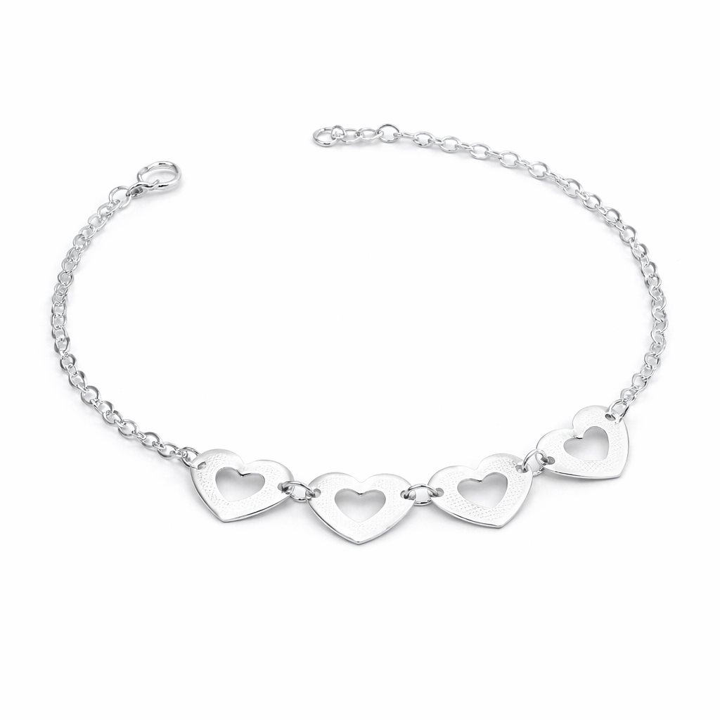 Início PULSEIRAS Feminina Pulseira Prata 4 Corações Vazado Com Textura