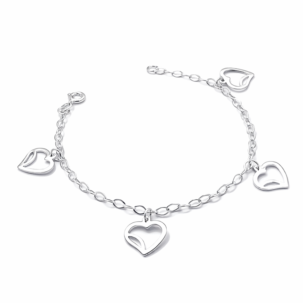 Pulseira Prata 4 Pingentes Coração Vazado com Risco