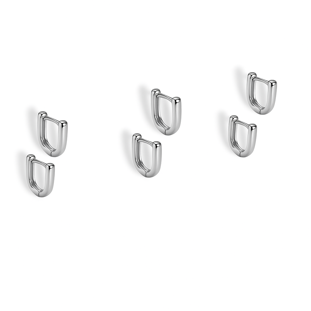 Detalhes Trio prata de argolas lisas , modelo U, fio redondo.