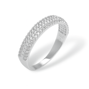 Anel Prata 2 Fileiras Cravejada com 1 Fileira de Esferas no Centro